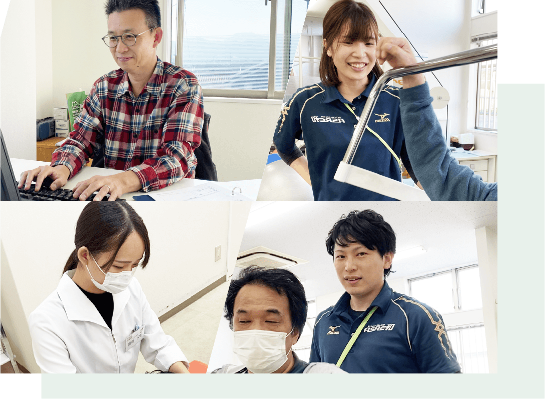 医療機関とはまた違った視点で、ご利用者様の生活により密着したリハビリテーションを提供することが出来ます。またスポーツトレーナー活動など、やる気次第では、他ではなかなか経験出来ない学びの機会がたくさんあります。