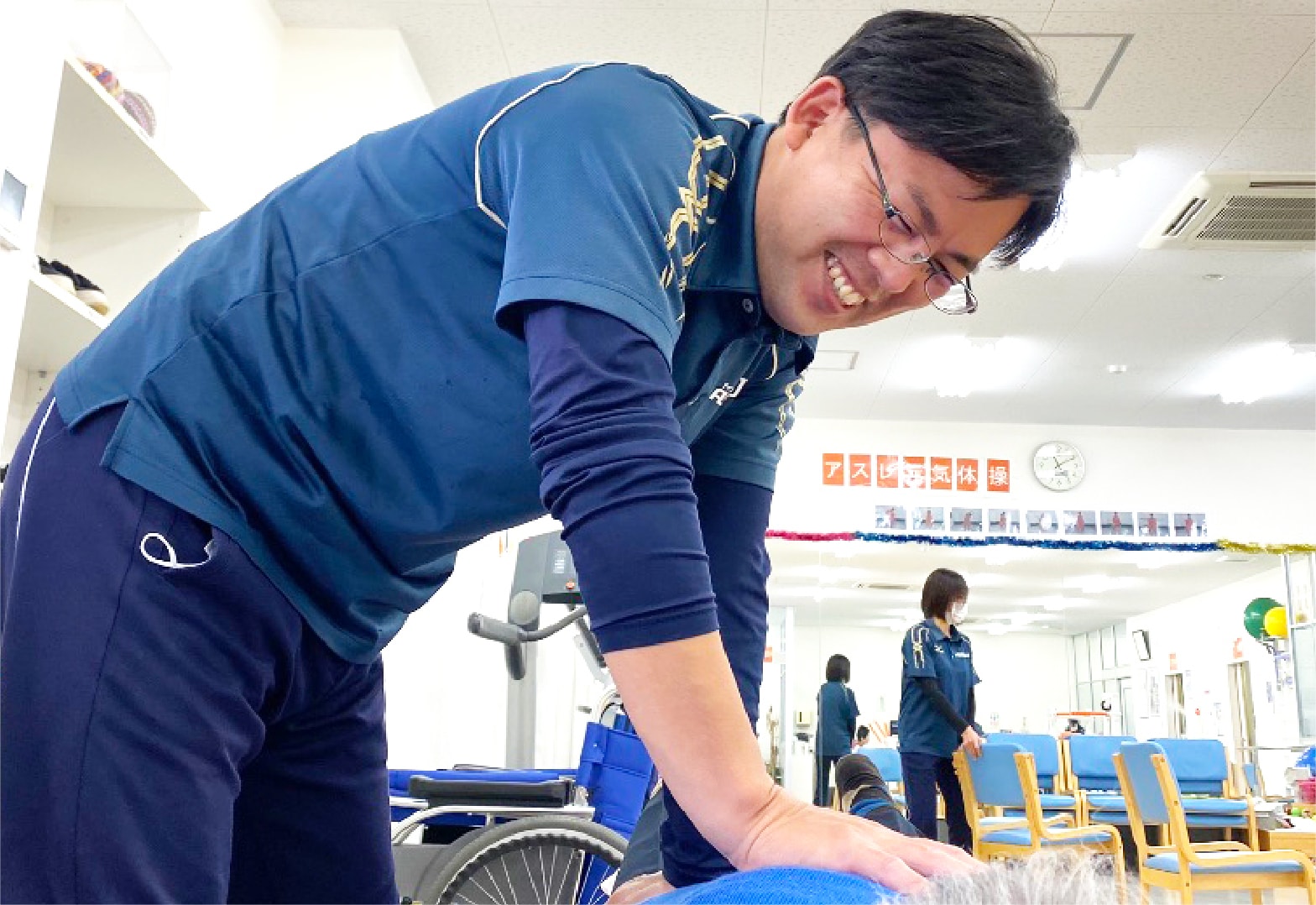 医療機関とはまた違った視点で、ご利用者様の生活により密着したリハビリテーションを提供することが出来ます。またスポーツトレーナー活動など、やる気次第では、他ではなかなか経験出来ない学びの機会がたくさんあります。