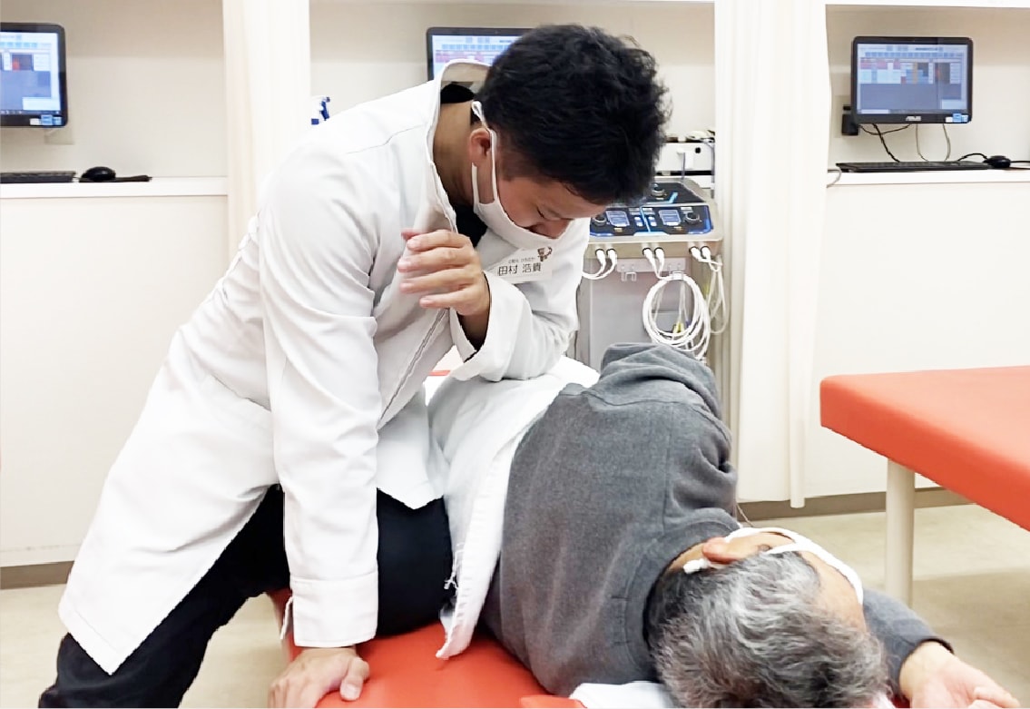 日頃は、『ほねつぎはなみずきはりきゅう接骨院』の院長として、他の職員と一丸となって、患者様のお身体の悩みを解消できる様、施術に励んでおります。徒手療法の他に、骨格矯正や電気療法なども取り入れております。